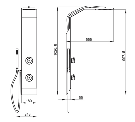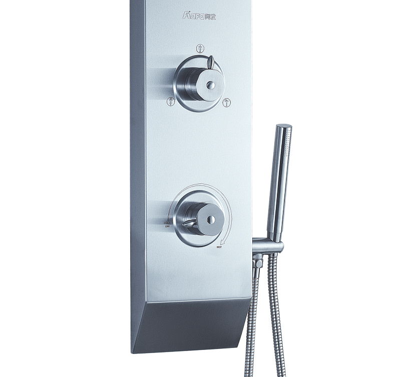 沐浴柱由不銹鋼整體壓鑄成型,簡(jiǎn)潔時(shí)尚、結(jié)實(shí)耐用。上下呼應(yīng)的斜角設(shè)計(jì),讓您的浴室更具美感,又避免了金屬銳角對(duì)人體的意外碰撞,,彰顯人性關(guān)懷。