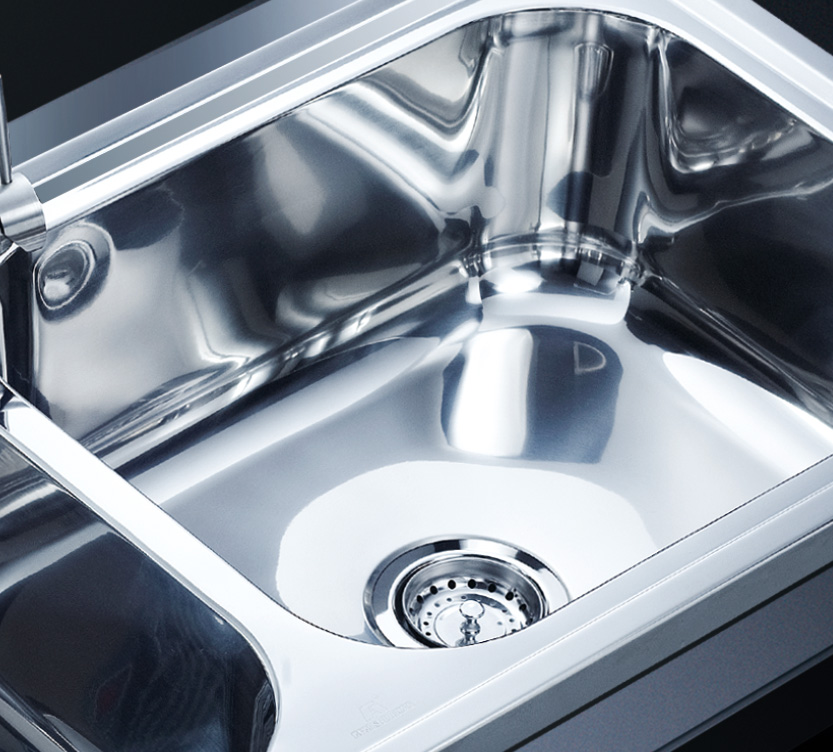 阿發(fā)水槽立邊采用國際先進的10-25°小R角一次成型拉伸技術(shù),更具立體感與時尚潮流,亦能充分擴展水槽利用空間;一次成型拉伸技術(shù),杜絕了焊接工藝易產(chǎn)生的水槽生銹,脫焊事故,充分保障水槽50年以上的使用壽命