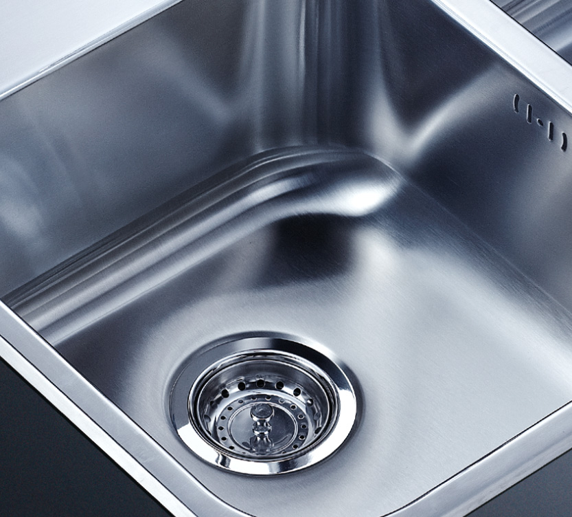 阿發(fā)水槽整體經(jīng)拉絲處理,質(zhì)地更加光滑,視覺更加柔和。能有效抵擋異物撞擊,刮傷及磨損,防止油污沾染,常用常新;柔和的光澤令水槽平添高雅氣質(zhì),更能避免鏡面材質(zhì)反射的光污染