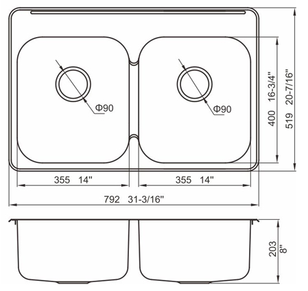 槽底采用斜面壓痕,四輻導(dǎo)流槽設(shè)計(jì),與平面壓痕和無痕水槽相比,導(dǎo)水更為流暢,下水更迅速,能有效防止積水,消除沉淀物