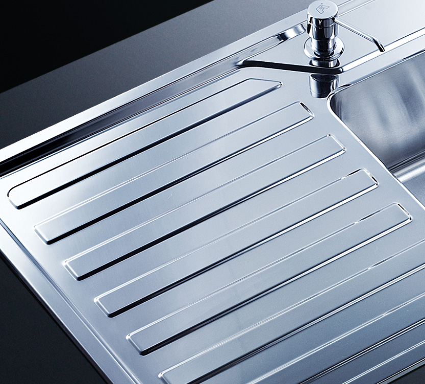 阿發(fā)水槽立邊采用國際先進(jìn)的10-25°小R角一次成型拉伸技術(shù),更具立體感與時尚潮流,亦能充分?jǐn)U展水槽利用空間;一次成型拉伸技術(shù),杜絕了焊接工藝易產(chǎn)生的水槽生銹,脫焊事故,充分保障水槽50年以上的使用壽命