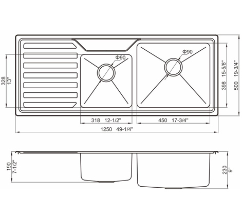 槽底采用斜面壓痕,四輻導(dǎo)流槽設(shè)計,與平面壓痕和無痕水槽相比,導(dǎo)水更為流暢,下水更迅速,能有效防止積水,消除沉淀物