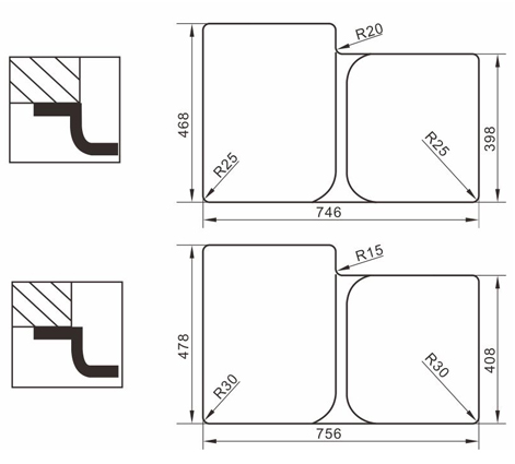 水槽四邊條采用一次成型的折彎加強筋工藝,雙倍堅固,承重力更強,解決了普通焊接工藝容易出現(xiàn)的凹點、脫焊、易割手等問題。專業(yè)配置的密封條和固定夾,安裝平整度高,不滲水,不松動