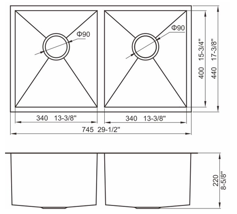 槽底采用斜面壓痕,四輻導流槽設計,與平面壓痕和無痕水槽相比,導水更為流暢,下水更迅速,能有效防止積水,消除沉淀物